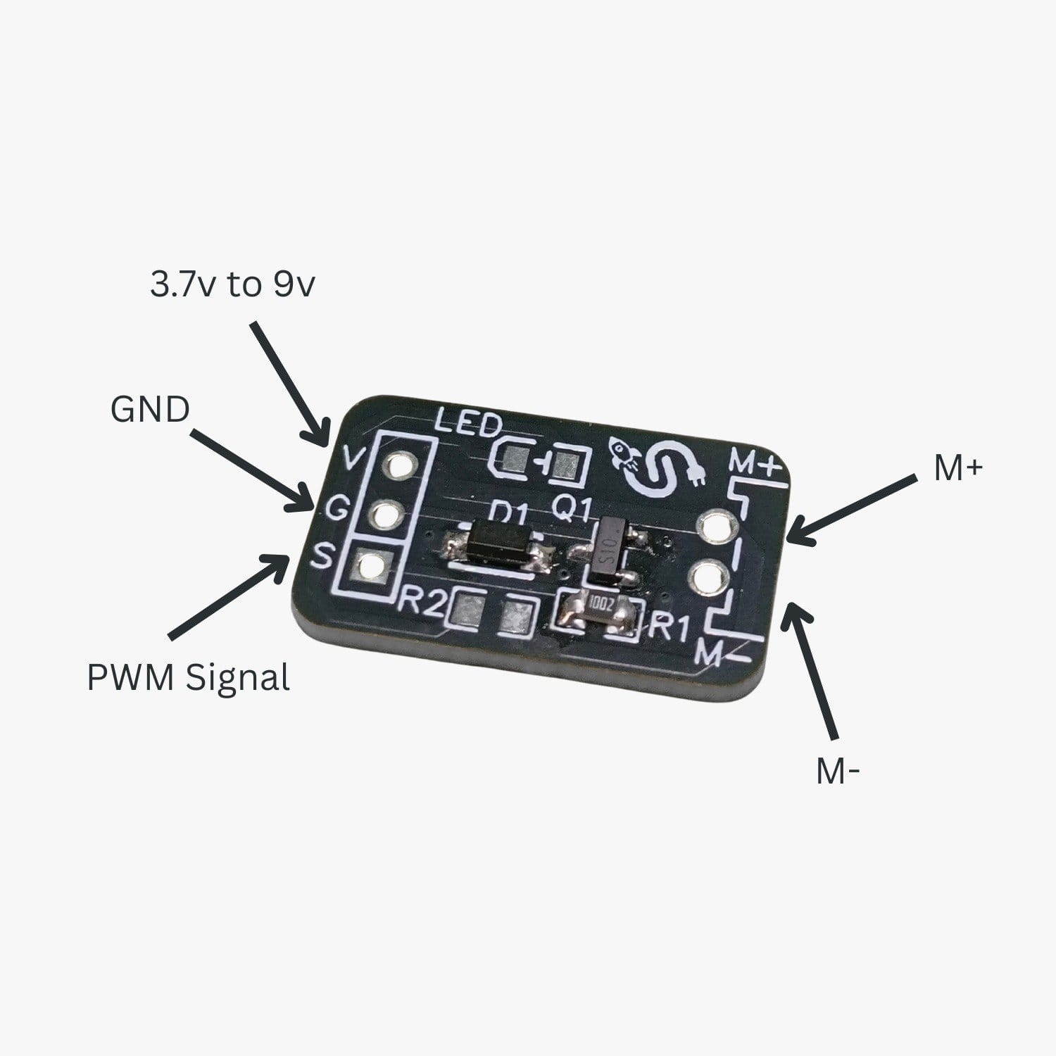 - Simple Connection: VCC (V), GND (G), Signal (S), and Motor Out (M+, M-)